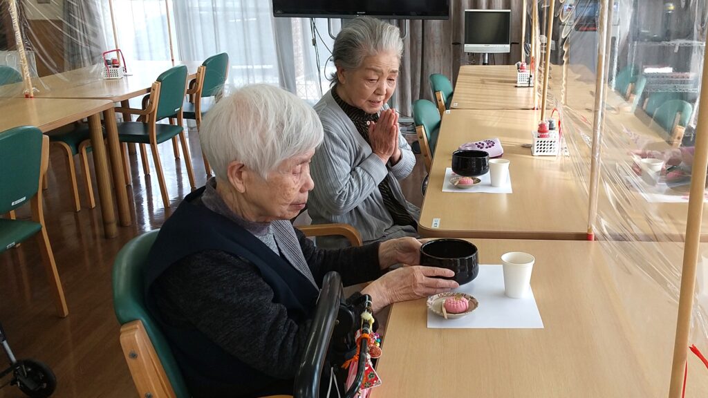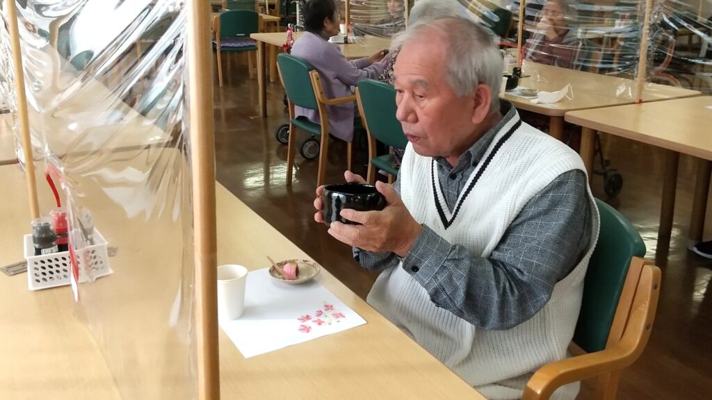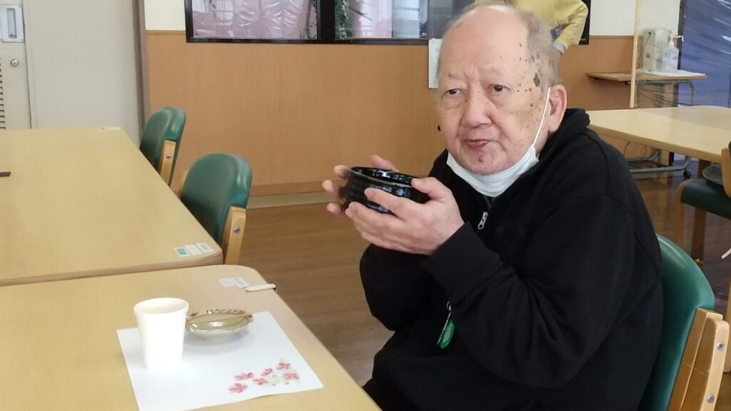 温かいお抹茶と季節の美味しいお茶菓子を召し上がりながら、入居者様同士で自然と会話が弾みました。