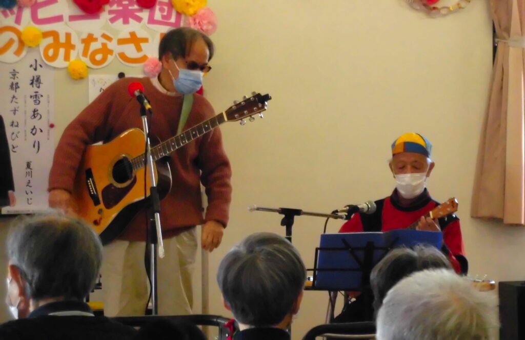ギター・アコーディオン演奏による歌声喫茶では、懐かしの名曲を合唱しました。