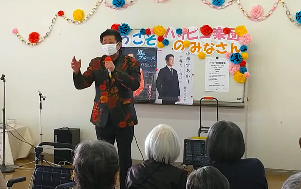 演目は、どじょう掬い、チンドン屋、ギター・アコーディオン演奏(歌声喫茶)、夏川えいじ様による歌唱です。当日の様子を少しだけご紹介します。