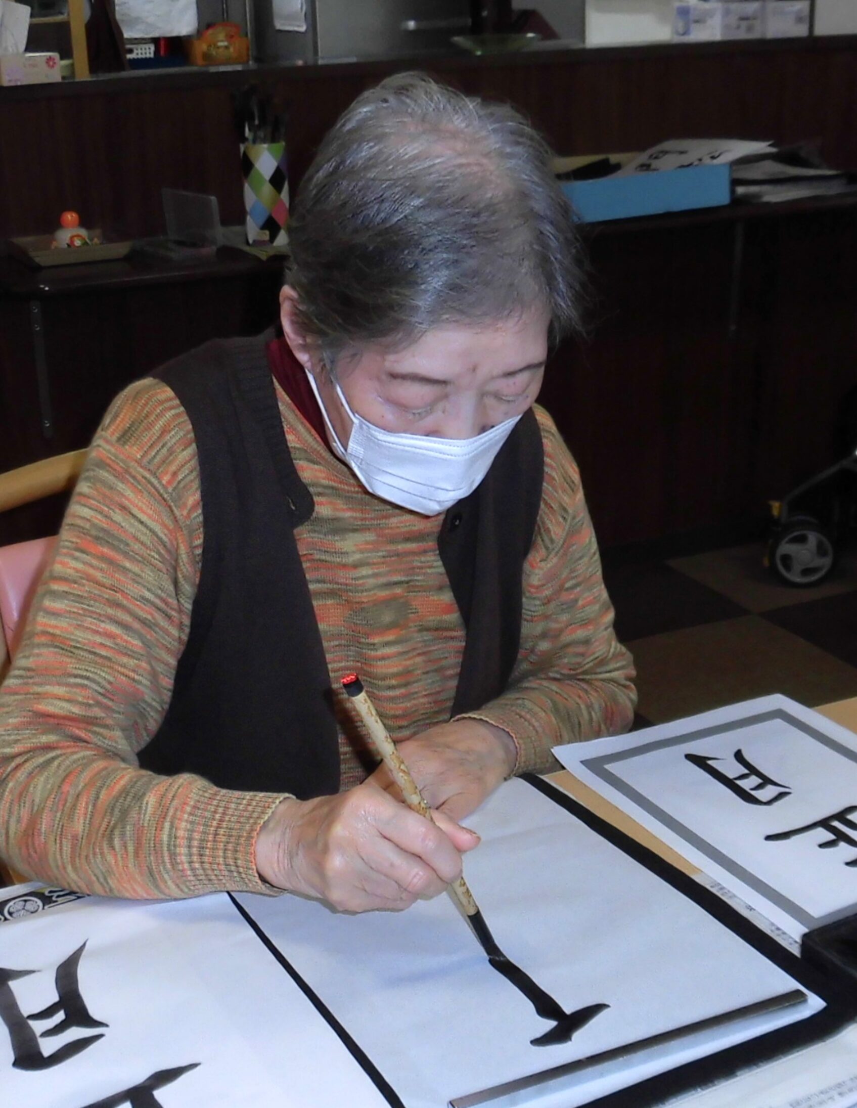 背筋を伸ばし、真剣な表情で筆を走らせていらっしゃいました。思い思いの願いを込めた力作が揃いました。